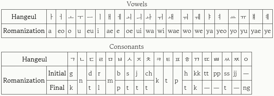 [25] “Romanization of Korean”. National Institute of Korean Language.